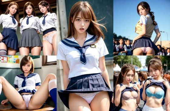 画像生成AIが作成したリアル・実写風の嫌そうな顔で下着やおっぱいを露出するJKエロ画像を厳選して400枚収録!