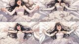 (2)ウエディングドレスを丁寧に身に纏い、ソファやベッドにゆったりと横たわります。