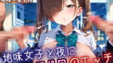 普段は目立たない地味系女子。でも、夜の学校でふたりきりになると、その雰囲気は一変する。控えめだった彼女が、月明かりの下で少しずつ大胆になっていく姿に心臓が高鳴る。恥ずかしがりながらもエッチに興味津々な表情で見つめてくる彼女の仕草がたまらなく可愛い。静かな校舎に響く小さな吐息と鼓動が重なり、地味で真面目な彼女との甘く危険な時間がゆっくりと流れていく――。